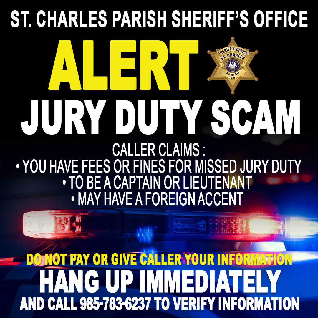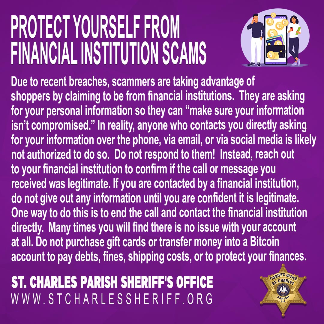 If you think you are being scammed, please hang up and contact your local banking agency or the Sheriff's Office at (985) 783-6807.