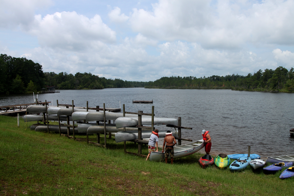 Racking the canoes